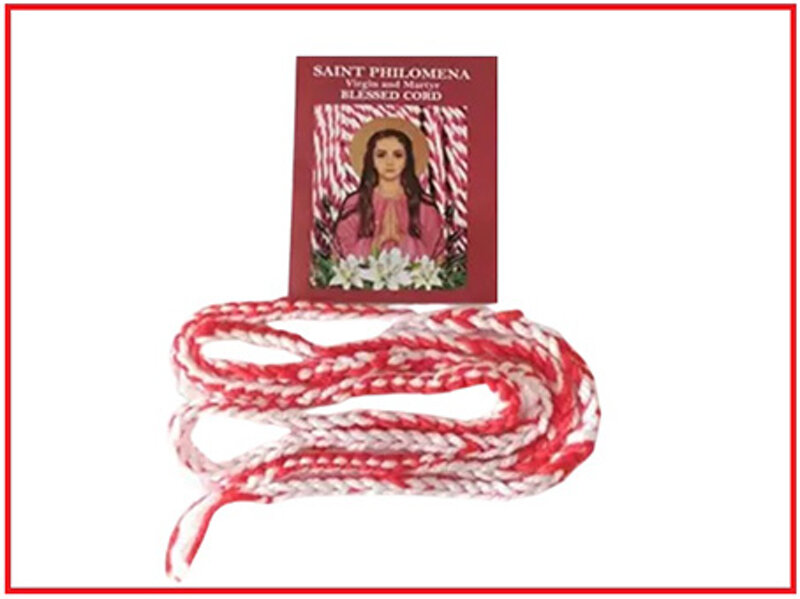 The Cord of Saint Philomena is made with threads of cotton or wool of white and red color. In one of the extremities it has two knots to remember the Virginity and Martyrdom of the Saint. This is worn under ordinary clothes like a belt.