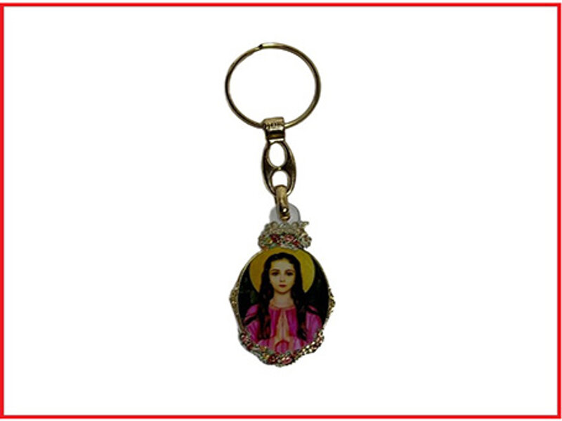 Portachiavi di Santa Filomena in metallo dorato